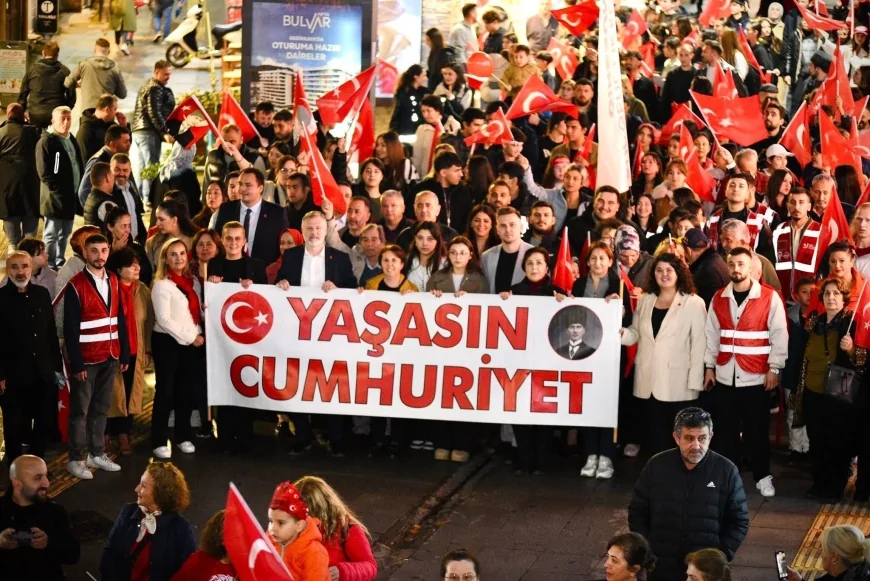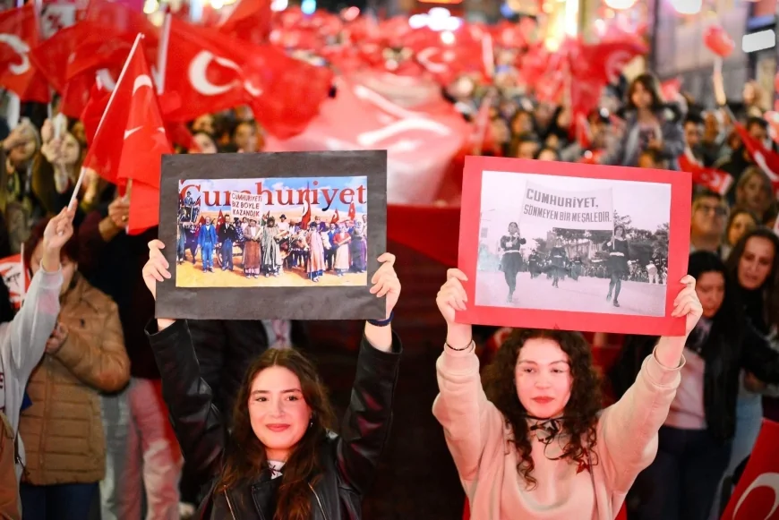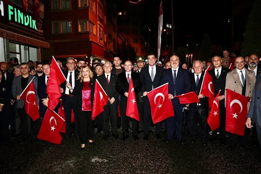 Giresun'da Cumhuriyet'in 102. kuruluş yıl dönümü, Giresun Belediyesi'nin düzenlediği Fener Alayı ve Cumhuriyet Yürüyüşü ile büyük bir coşkuyla kutlandı. Binlerce vatandaş, ellerinde meşaleler ve Türk bayraklarıyla Atatürk Meydanı'na yürüdü.