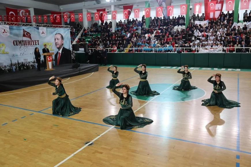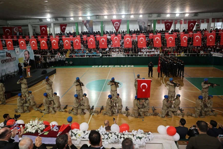 Giresun'da Cumhuriyet'in 102. yılı, Valilik'teki tebrikat töreni ve 19 Eylül Kapalı Spor Salonu'ndaki coşkulu programla kutlandı. Vali Mehmet Fatih Serdengeçti'nin katıldığı etkinliklerde şiirler, halk oyunları, spor gösterileri ve resmi geçit töreni yer aldı. Vali Serdengeçti, program sonrası törende dengesini kaybederek düşen öğrenci Mustafa Sıbıç'ı hastanede ziyaret ederek geçmiş olsun diledi.